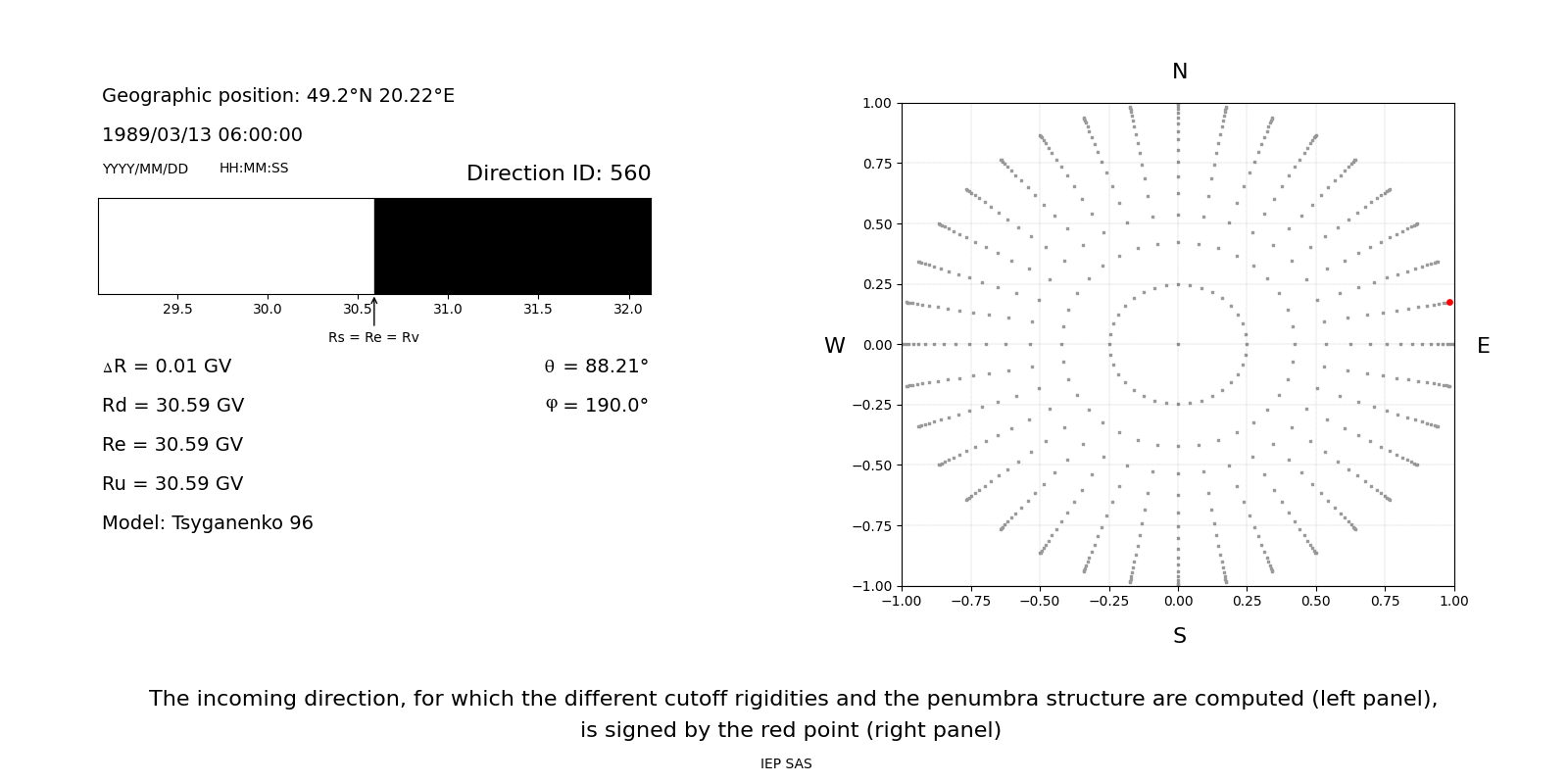 Effective cutoff rigidity sky map evaluated from 576 directions. Incoming directions cover a full half sphere.